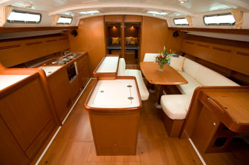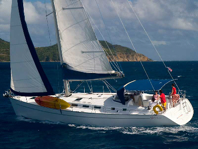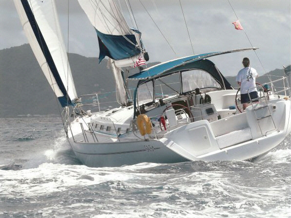 It is a very comfortable boat, with most every amenity, including 100hp Yanmar, modern color GPS plotters and electronics, twin wheels, furling 110% jib, triple reef main with stack pack, a brand new asymmetrical spinnaker, below-deck autopilot, dodger, floating bimini, electric windlass, Onan generator, air conditioning and heating, fridge, freezer, fully equipped galley, and much more. Motoring, it cruises at about 8 knots, with a max of 9.5 knots. Sailing is still performance oriented thanks to its modern hull design and smart sail plan, and it will outpace most other racing/cruising boats of its size.