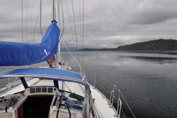 My next internet access will be in about 4 days when we reach Port McNeil. In the meantime here are two photos. One is glassy waters between Nanaimo and Comox. The other is the southeast entrance into Discovery Passage. What a difference a day can make.