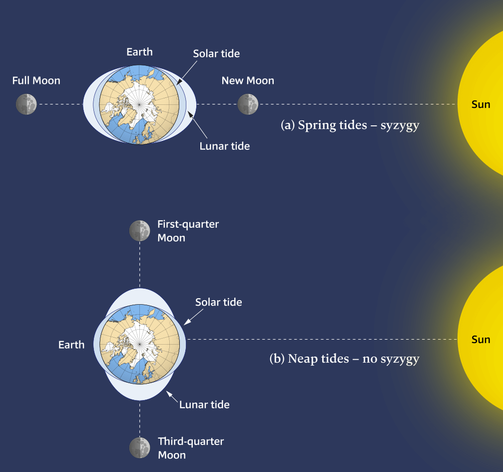 I was reminded of these puzzles recently because of what the news media were calling “King Tides.” This isn’t official terminology from NOAA; it’s used to sensationalize the highest tides of the year. The media routinely explained that these tides occur “when the sun, moon, and earth are in alignment.” But wait just a durned minute. Doesn’t that happen twice in every single month, in which case they are just plain old “spring” tides? How do these get the royal treatment if they’re no different from the commoners?